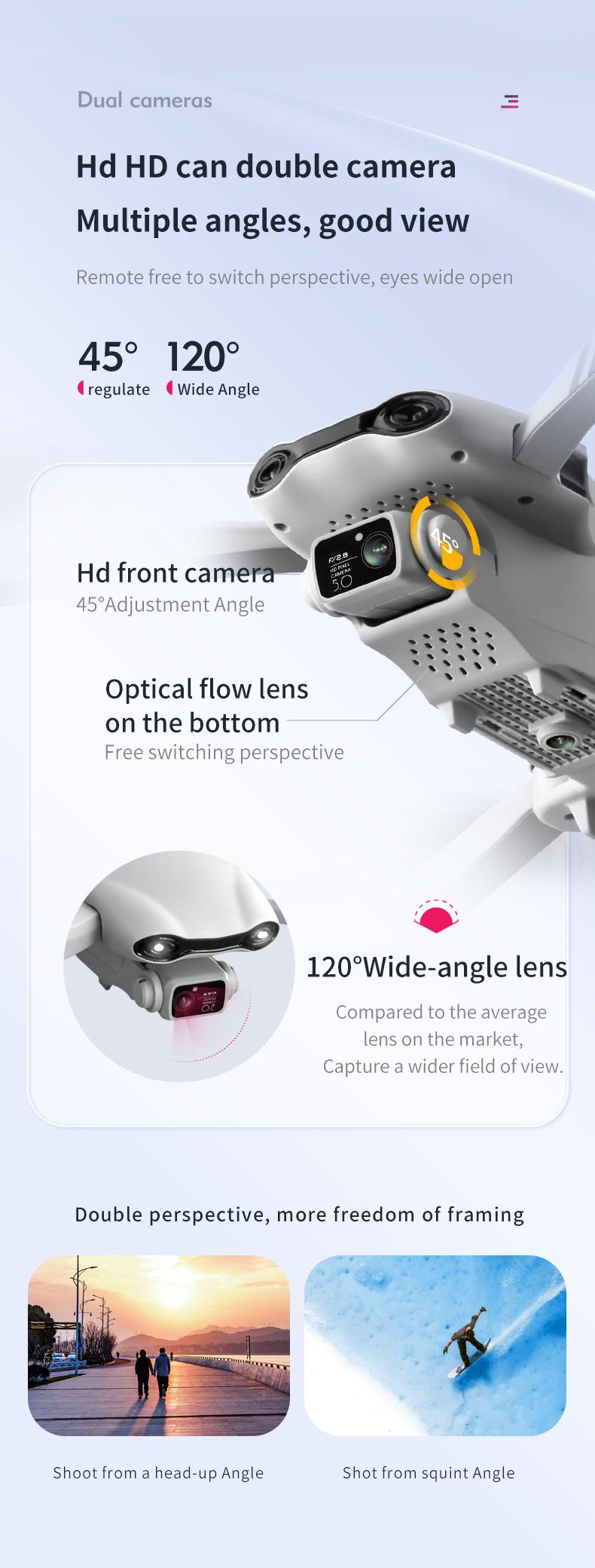 El dron incluye dos baterías para una mayor autonomía de vuelo. Permite realizar giros de 360° para realizar maniobras dinámicas. Perfecto para fotografía y videografía aérea. Este dron es una opción versátil tanto para aficionados como para profesionales.